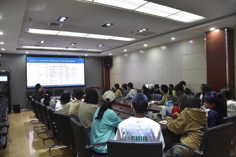 报告伊始,邢老师讲述了研究背景、理论基础和国内外旅游扶贫绩效评估研究综述,以此展开讲座的内容。接着以保定市为例开展实证研究,对第二部分内容进行讲述。在报告尾声,邢老师对稳定脱贫的绩效评价、制约因素及对策进行讲解。会上师生们积极互动,气氛活跃。