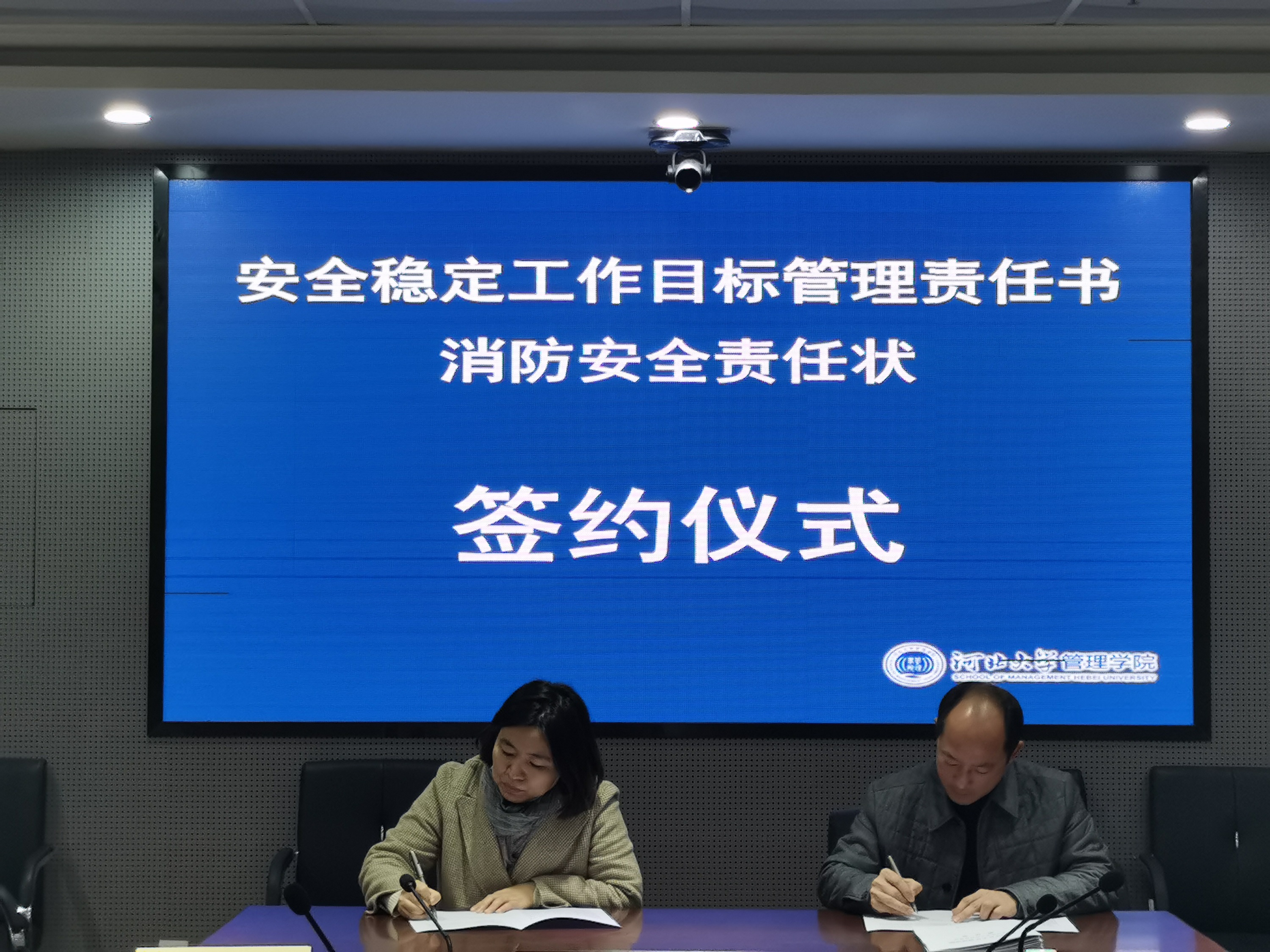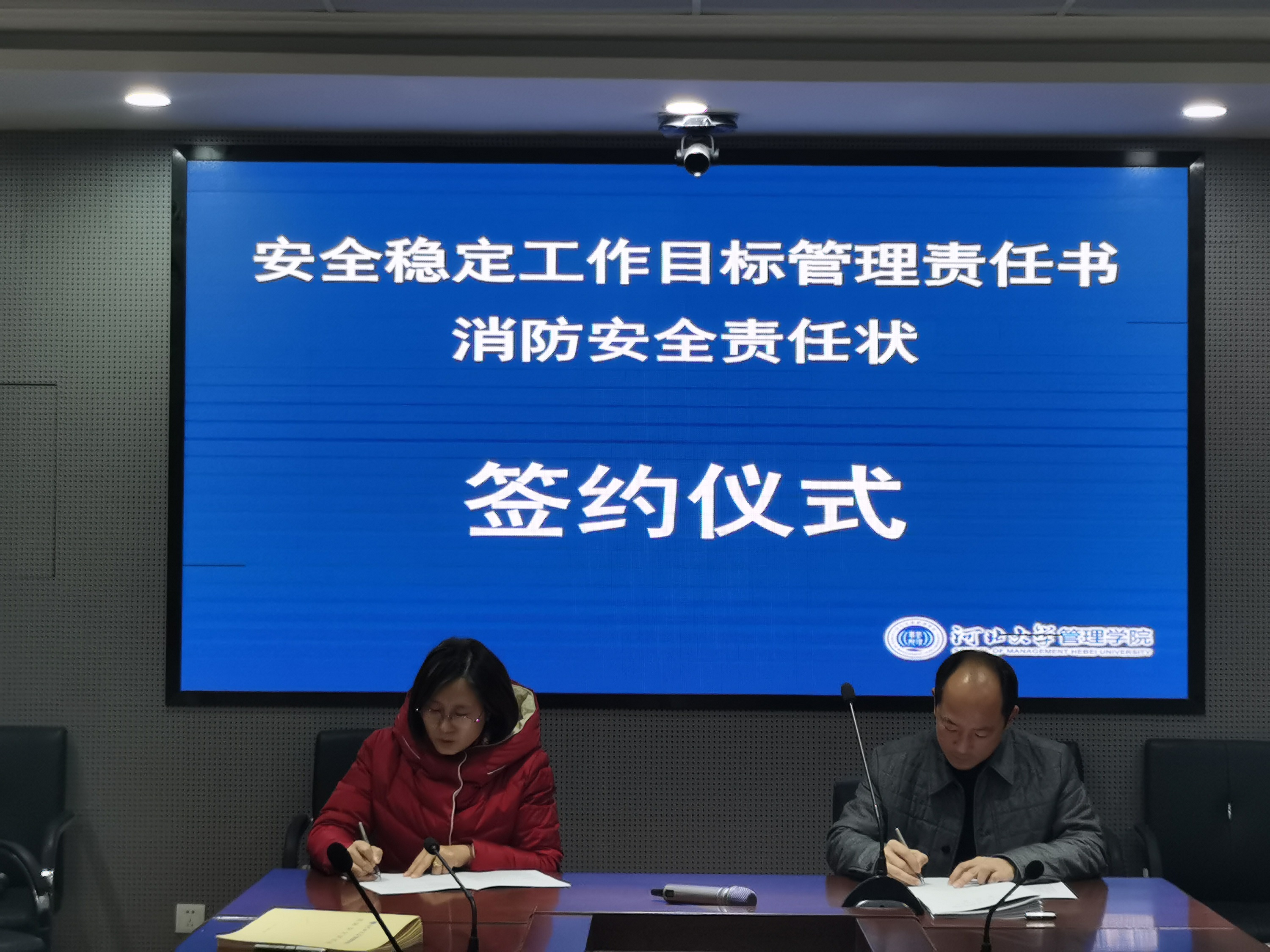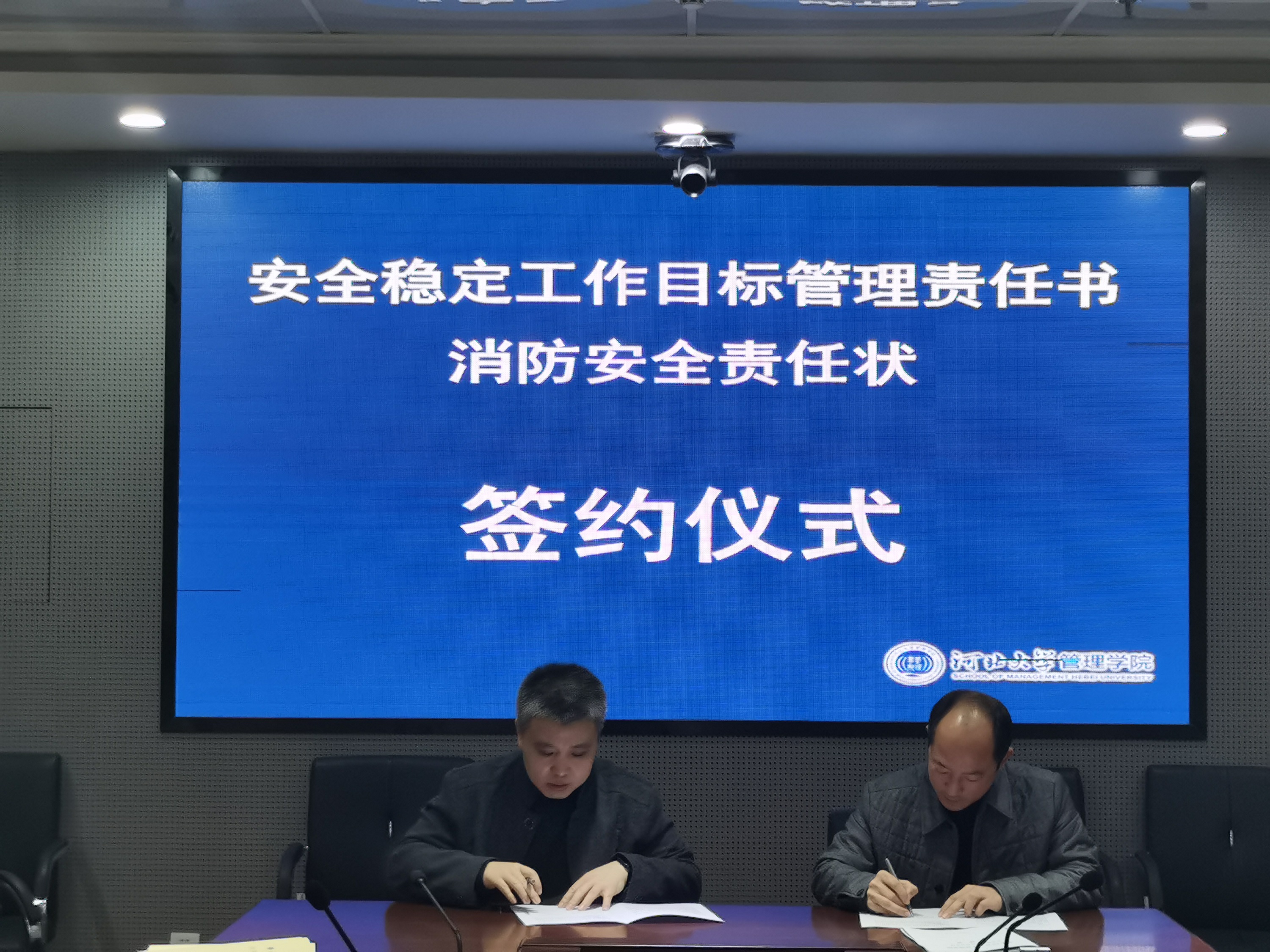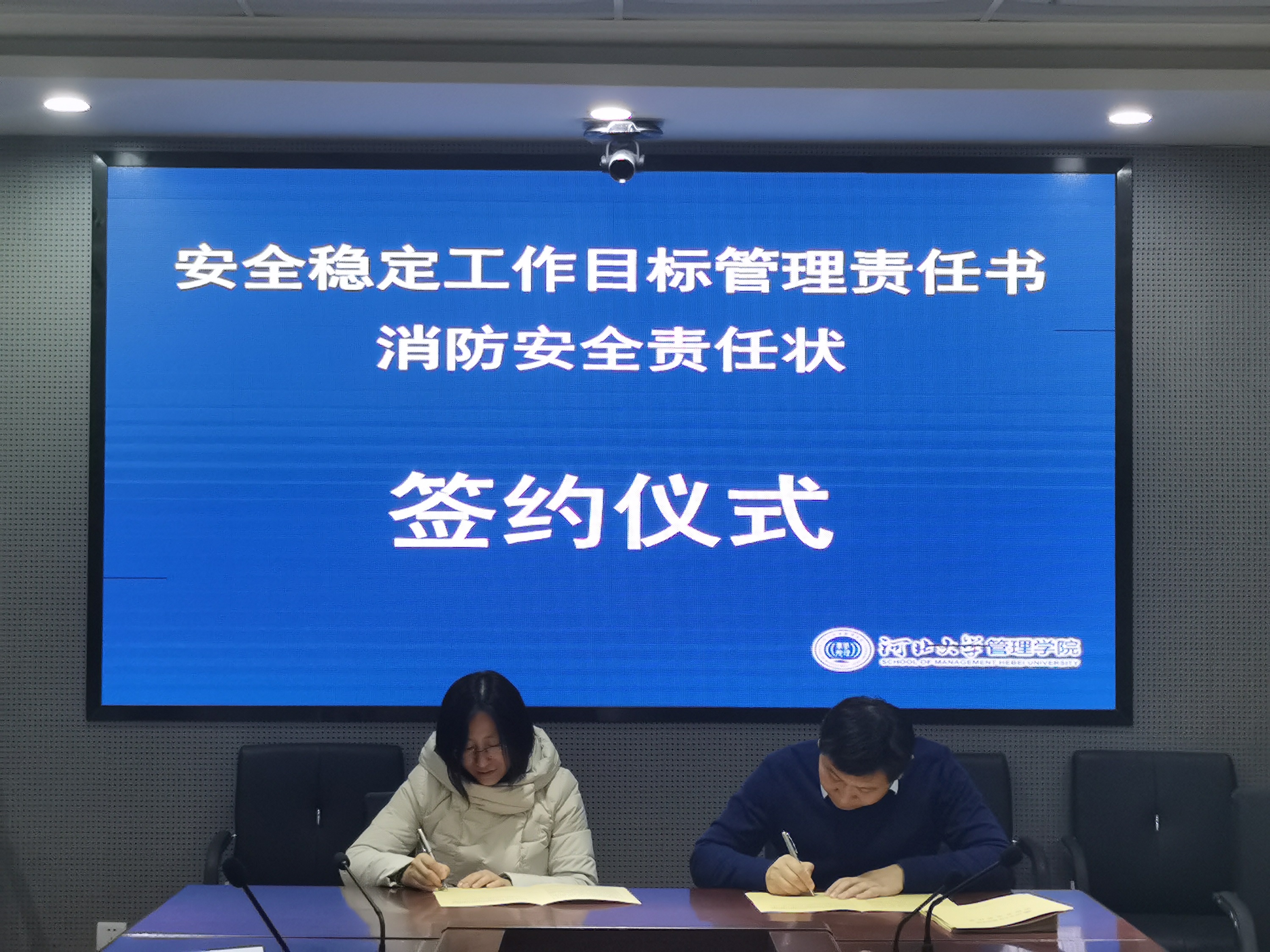 12月31日,管理学院在新区会议室举办安全稳定工作目标管理责任书和消防安全责任状签约仪式。我院党委书记赵林涛、院长段洪波分别与各科长、各系主任签订了2021年安全稳定工作目标管理责任书和消防安全责任状。
