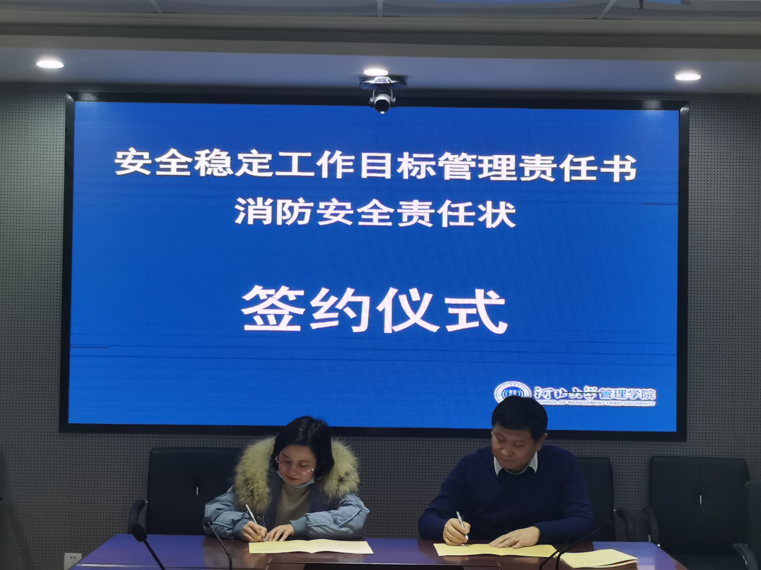 本次2021年安全稳定工作目标管理责任书和消防安全责任状签约仪式的成功举办,是对学院2020年整体安全稳定工作进行总结,也是对2021年学院安全稳定工作作出部署,我院将继续牢守安全底线,为学院和学校的改革发展、为安全文明和谐校园的建设创造良好环境。