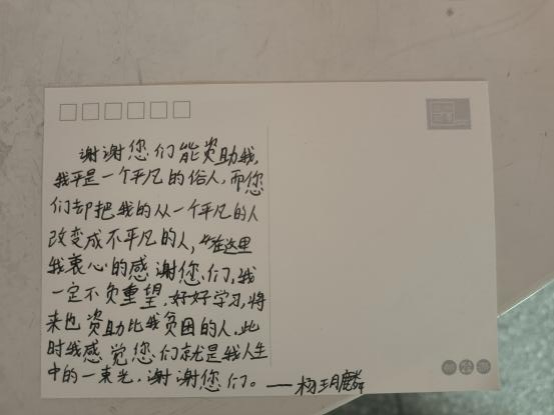 活动结束后,孩子们用稚嫩的笔迹写下感谢的话语。字里行间满是对哥哥姐姐们的真挚谢意,更流淌着对大学校园的无限憧憬。他们在信中郑重承诺,一定会以知识为桨、以勤奋为帆,在成长路上奋力前行,将来成为建设祖国的栋梁之材,让这份跨越山海的温暖化作回馈社会的力量。