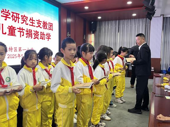 捐献活动中,六枝特区第一小学的校领导代表学校从支教团成员们的手中接过了捐献物资,孩子们也有序领到了新的学习用品。孩子们手捧着新的文具细细端详,这些曾陪伴学长学姐度过青春时光的“伙伴”,如今跟着支教团志愿者们扎根西部,化作滋养童心的春泥。除了满载故事的书籍、带着温度的玩具,崭新的文具套装与干净的衣物也整齐摆放在教室角落——写满了励志话语的明信片也让孩子们感受到跨越山海的牵挂。