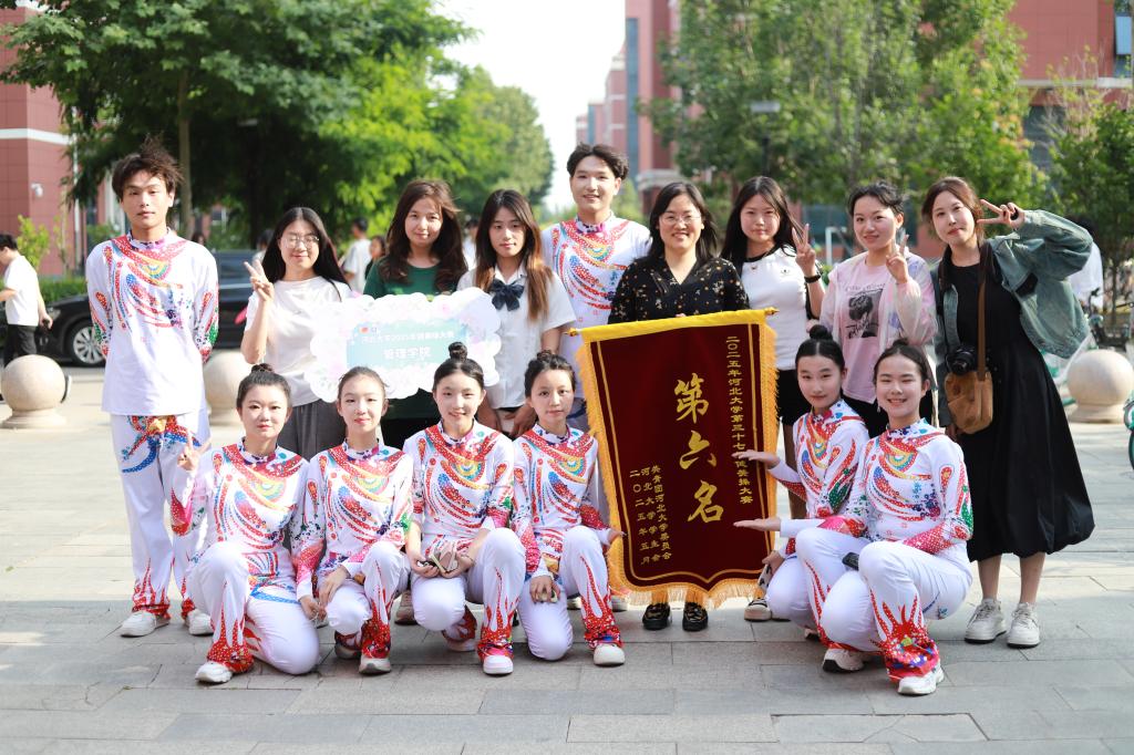 备赛过程中,管理学院艺术团和健美操队员们付出了无数的努力和汗水。他们在课余时间坚持高强度的训练,不断打磨每一个动作,力求做到完美。即便面临学业和训练的双重压力,队员们也从未有过丝毫退缩。党委副书记张丽老师专门邀请了专业老师进行了耐心细致的指导,不仅精心设计动作编排,还在精神上给予大家极大的鼓励和支持。正是这种坚持不懈的努力和团结一心的精神,让他们在赛场上绽放出耀眼的光芒,最终收获了令人骄傲的成绩。