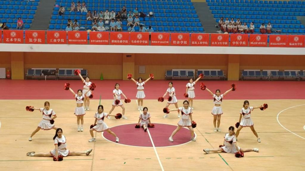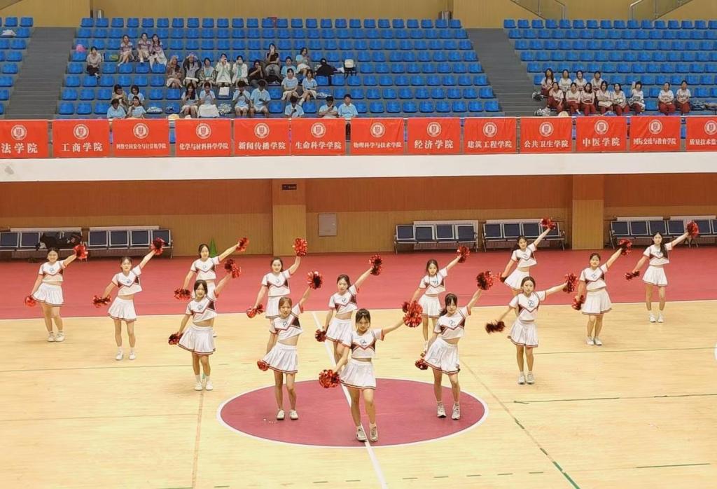 在篮球宝贝啦啦操比赛中,管理学院啦啦操队表现出色。队员们身着活力四射的服装,以饱满的热情投入到比赛中。她们的动作整齐划一,舞蹈编排新颖独特,融合了多种风格的元素,跳跃、旋转、托举等动作精彩纷呈,充分展示出青春的朝气与力量。每一个表情、每一个眼神都充满了自信,用舞蹈为比赛增添了无限的魅力和激情,最终赢得了现场评委和观众的一致认可,获得了季军的好成绩。