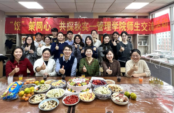 10月23日中午,管理学院在七一路校区“河当家”共享厨房成功举办了以“‘饺’策同心,共探秋实”为主题的师生交流活动。学院党委书记马洁、党委副书记张丽、副院长杨国庆、吴树芳、团委书记谷童玮、专职组织员李丹妮以及来自本科、研究生的学生代表齐聚一堂,在温馨融洽的氛围中共话成长、畅想未来。