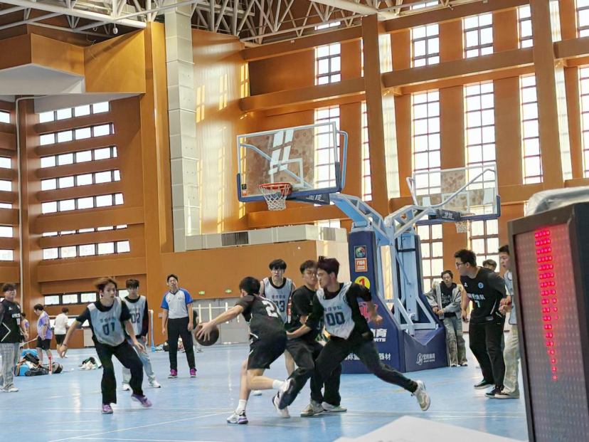 决赛场上,研究生队与会计学队狭路相逢,斗志昂扬。从跳球的那一刻起,双方球员便全力以赴,火力全开!敏捷的转身、精准的投射、默契的传接、坚定的防守,每一个回合都凝聚着汗水与智慧,每一次得分都点燃全场的激情!场边观众的呐喊声、欢呼声此起彼伏,汇聚成一片青春的热浪,澎湃不息。