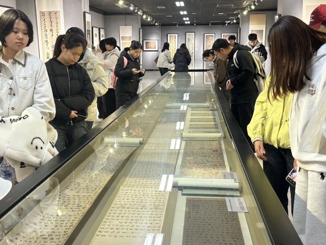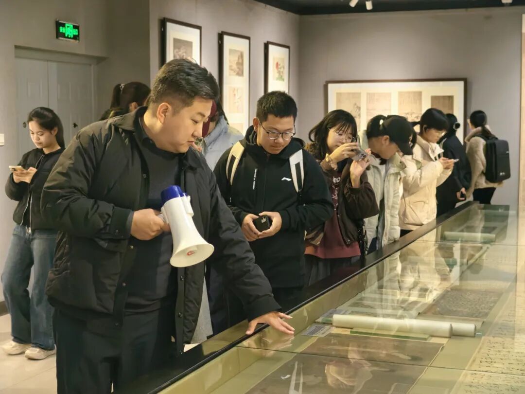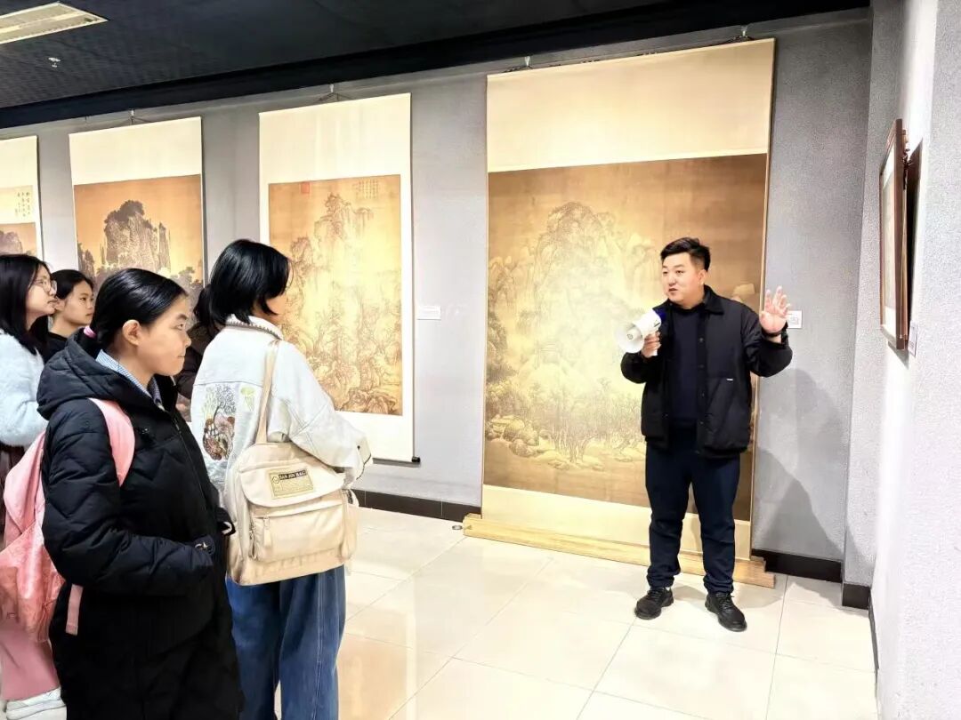 在马野超老师的带领下,同学们走进了艺术学院常设展厅、中国历代书画临摹展室、陈文增定瓷陈列展室等文化艺术空间。在静谧雅致的展厅内,一幅幅笔精墨妙的书画作品,或苍劲有力,或清雅脱俗,展现了中华传统文化的深厚底蕴;而一件件造型古朴、釉色温润的定瓷展品,则以其“白如玉、薄如纸、声如磬”的独特魅力,深深吸引了在场同学的目光。在这里,同学们化身为艺术的欣赏者与思考者,在点画勾勒与窑火淬炼中,感受匠心精神与创造之美。一位学员表示:“今天看到这些艺术品,我意识到深厚的文化底蕴和极致的美学追求本身就是巨大的创新源泉和品牌价值。”