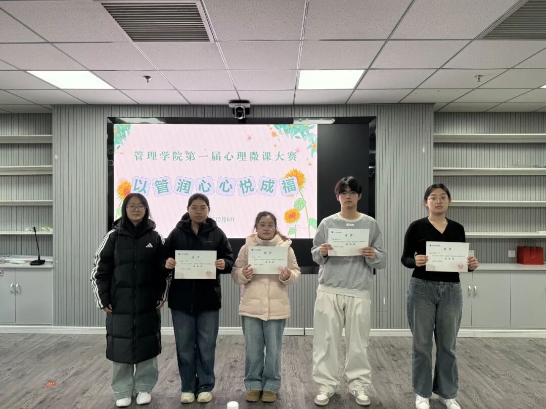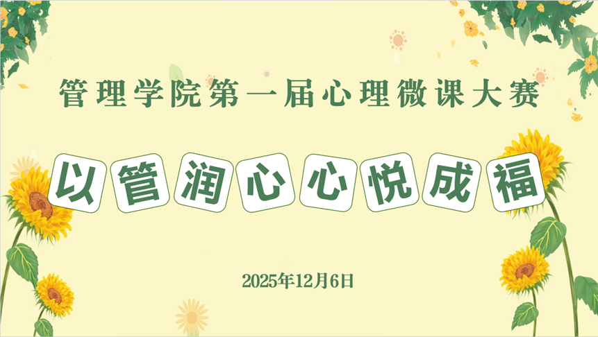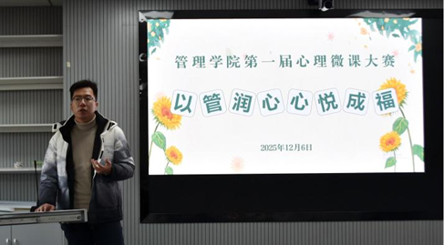 本次心理微课大赛是管理学院在心理育人工作上的一次创新实践,为学生提供了知行合一的心理健康教育交流平台,进一步拓展了学院心理健康教育的形式与内涵。未来,管理学院将继续立足学生心理发展需求,整合优质教育资源,开展更多精准有效、广泛覆盖的心理健康主题活动,持续筑牢学生心理安全防线,助力学子培养积极乐观、理性平和的心态,在求知与成长的道路上实现内心丰盈、人生出彩。
