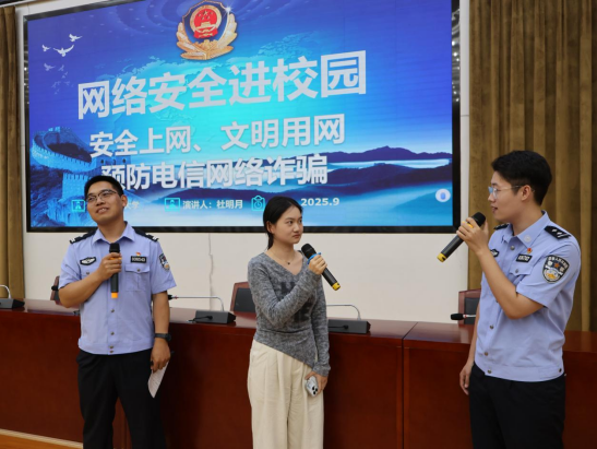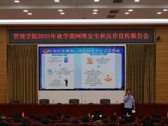 2025年国家网络安全宣传周定于9月15日至21日举办,主题为“网络安全为人民 网络安全靠人民—以高水平安全守护高质量发展”,管理学院积极响应号召,通过主题班会、团日活动、宣讲会、竞答、体验等活动,助力平安校园建设。本次网络安全与反诈宣讲报告会是学院新生入学教育系列活动中至关重要的一环,新生同学们纷纷表示,通过这种有趣又“有料”的活动,对网络安全有了更深刻的理解,防范诈骗的“免疫力”和文明用网的意识显著增强,为开启大学生活提供了重要的安全保障。今后,学院将持续开展形式多样的安全教育活动,全力构建平安、和谐、稳定的校园环境。