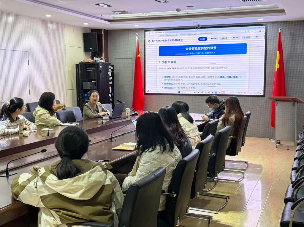11月21日下午,我院在B1-215组织开展了教学沙龙活动,此次活动的主讲教师为会计系余军老师,题目为“基于Python的财务智能化课程建设”。活动伊始,管理学院副院长吴树芳介绍了主讲教师的基本情况,希望与会教师通过本次沙龙深入探讨课程建设路径,共同推动课程教学改革创新。余军老师从“会计智能化转型的背景、会计智能化转型探索、会计智能化课程体系的构建、教师方法与师资培养、教学示例”五个方面,系统阐述了财务智能化课程的建设思路与实践经验。经验分享结束后,参会教师围绕如何利用Python等智能技术工具提升教学效率,以及如何开发新型教材等问题展开了深入探讨。
